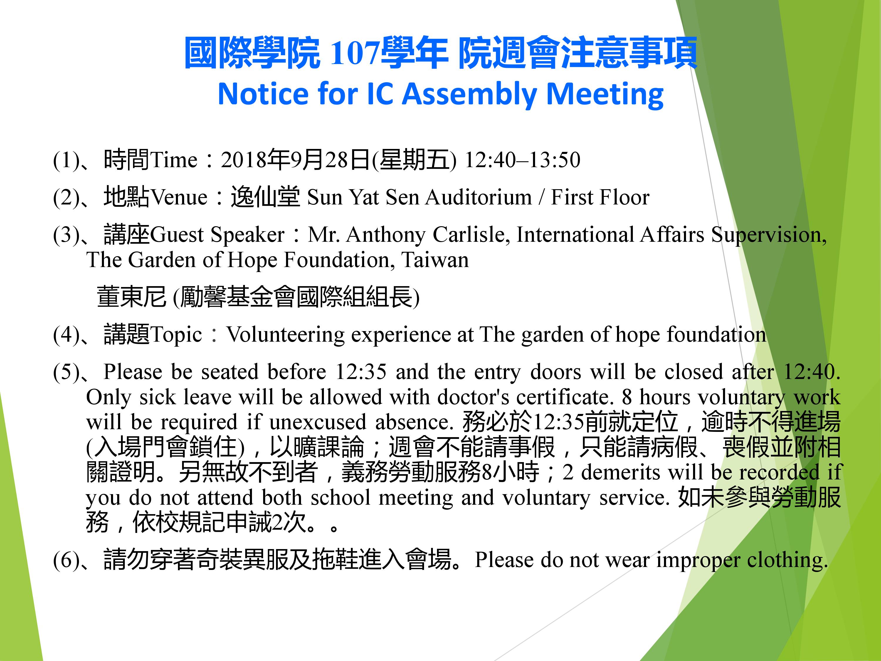 Notice for IC Assembly Meeting ( Taipei )